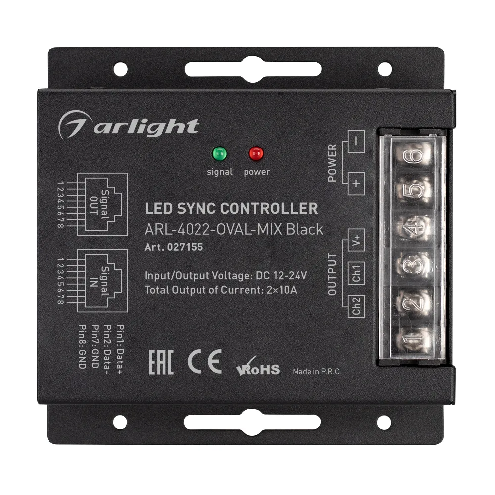 Контроллер ARL-4022-OVAL-MIX Black (12-24V, 2x10A, ПДУ, RF) (Arlight, IP20 Металл, 3 года)